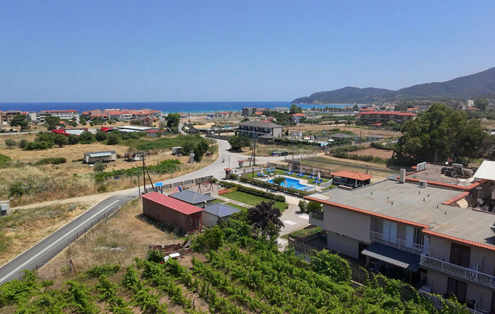 Kuća Akis New Sarti je noviji blok poznate kuće Akis, na oko 420 metara od mora, sa uređenim dvorištem sa roštiljem, parkingom i manjim dečijim igralištem. Studiji za 2-4 osobe se nalaze u prizemlju i na prvom spratu. Kuća Akis New Sarti ima SAT TV, WiFi i klima uređaje čije je korišćenje uključeno u cenu. Gostima je na raspolaganju dvorište sa bazenom i roštiljem u kući Katerina Resort koja je udaljena oko 100m. Uz minimalnu doplatu je omogućeno korišćenje i veš mašine.