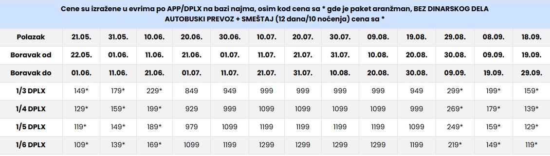Smene od 21.06. do 30.08.2026. su po APP/DPLX – 10 noćenja
