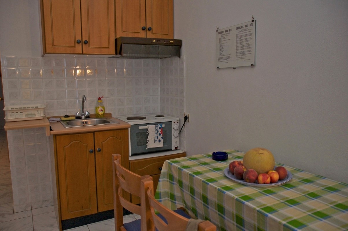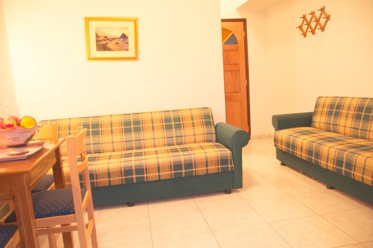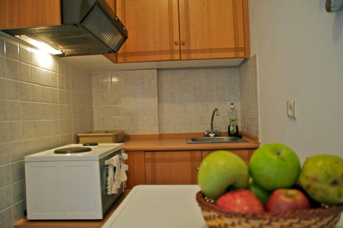 1/4 apartman – u jednoj prostoriji bračni ili dva obična ležaja, u drugoj prostoriji dva kauča i čajna kuhinja.