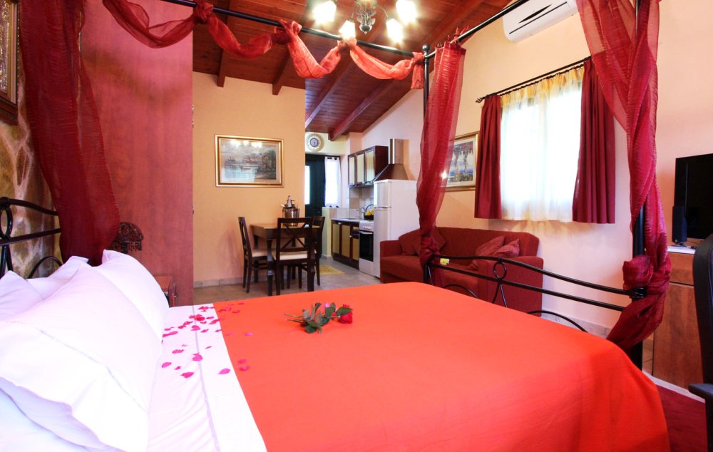 ČETVOROKREVETNI APARTMAN: se nalazi u delu blizu drugog velikog bazena i dečijeg bazena, kao i blizu igrališta za decu. Takođe, tu je i veliki nadkriveni parking. U neposrednoj blizini je i sala za doručak. Apartmani su izuzetno prostrani. Sastoje se od dve prostorije koje su odvojene vratima. Ulazi se u izuzetno prostran dnevni boravak sa kuhinjom. Tu se nalaze dva ležaja na razvlačenje svaki dimenzija (100X180cm), TV, klima uređaj, trpezarijski sto za ručavanje sa četiri stolice. Kuhinja je velika, prostrana i sastoji se od šporeta sa ravnom pločom sa četiri ringle i rernom za pečenje, frižider sa posebnom komorom za zamrzavanje, aspirator i pribor za ručavanje za četiri osobe. U nastavku se ulazi u spavaću sobu koja u svom sastavu ima Francuski ležaj dimenzija (140X200cm), ormar, sef klima uređaj, TV, noćni stočić sa ogledalom, dva mala stočića pored kreveta. Iz spavaće sobe se izlazi na prostranu terasu, koja je opremljena stolom sa četiri stolice. Kupatilo se nalazi u prvom delu apartmana i u njega se ulazi iz dnevnog boravka. Kupatilo poseduje tuš kabinu i fen za kosu. Izvrsni apartmani, jako prostrani. Preporuka za porodice sa decom ili društvo.
