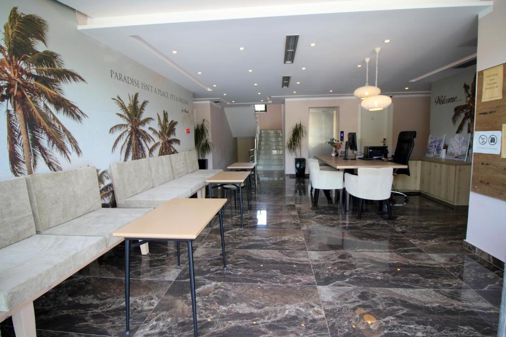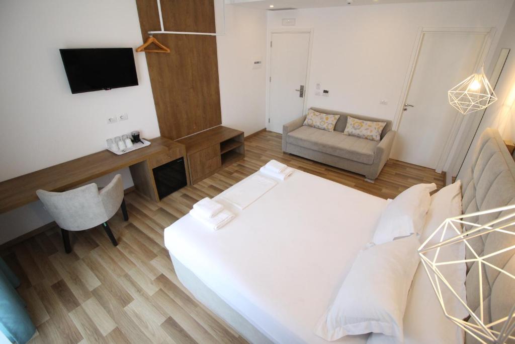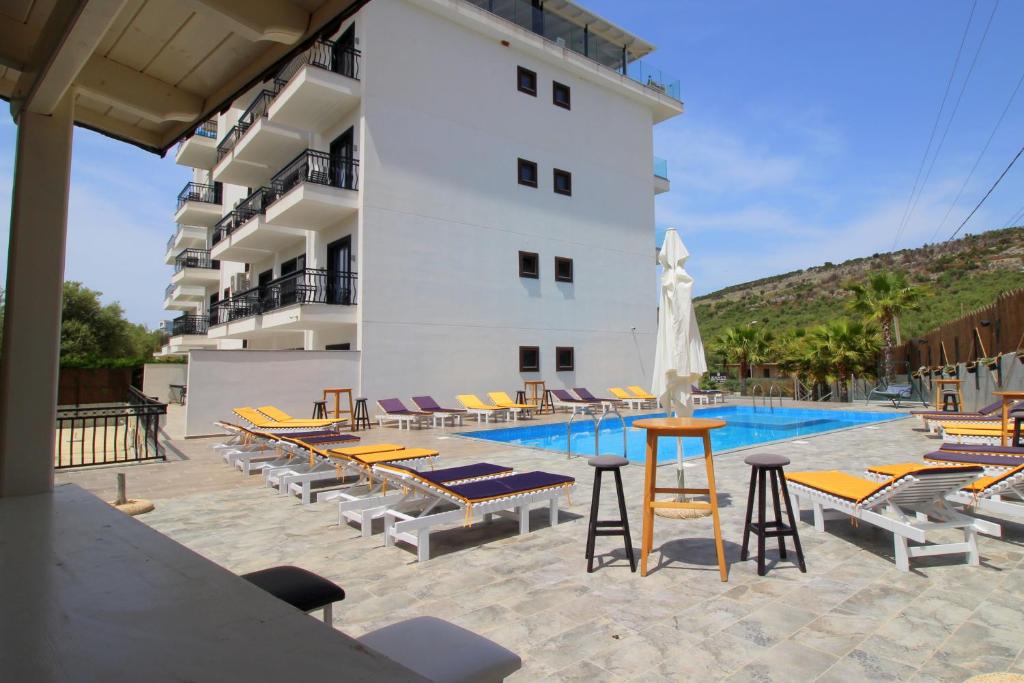 Hotel Bianco 4* Ksamil Albanija je smešten u Ksamilu. Raspolaže sezonskim bazenom na otvorenom, besplatnim privatnim parkingom, barom i vrtom. Smešten je na 200 metara od plaže Sunset. udaljen na oko 200 m od plaže Sunset i na oko 700m od plaže Coco i plaže u Ksamilu.