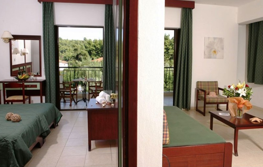 Family Suite-35 m2, novorenovirani, prostrani porodični apartmani sa jednom spavaćom sobom imaju dnevnu sobu sa ugaonom sofom i bračnim krevetom, kao i odvojenu spavaću sobu sa bračnim krevetom, veliku terasu sa sopstvenim ležaljkama i jedno kupatilo.