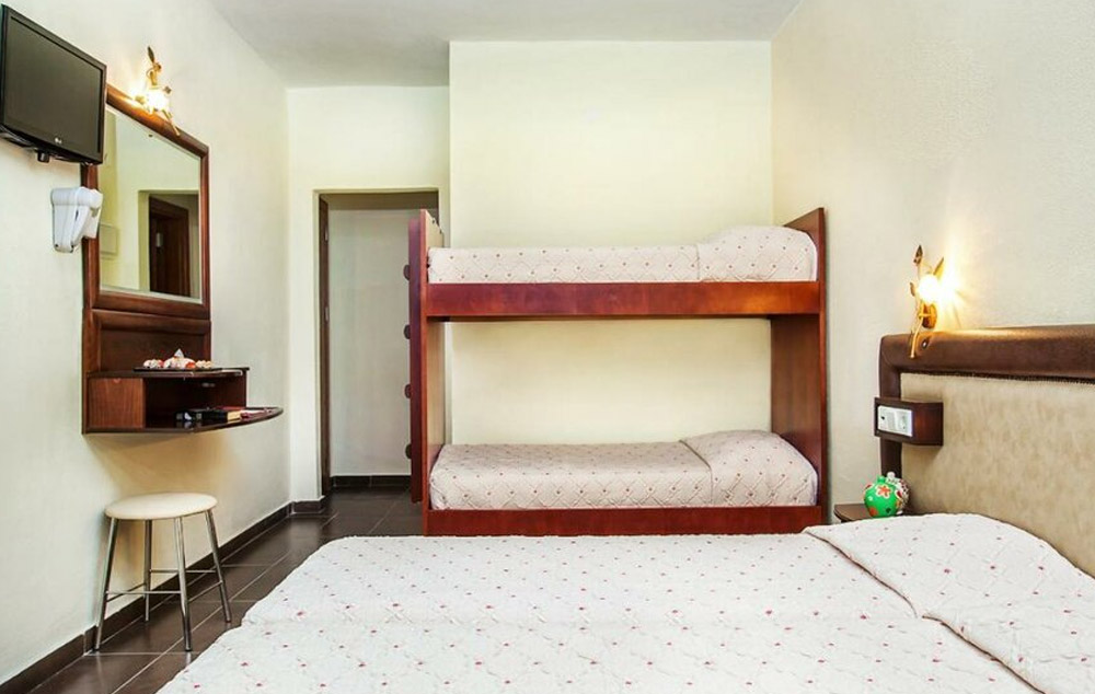 Family Room-Oko 23 m2, sa bračnim ili dva odvojena kreveta i krevetom na sprat. Može da primi do 2 odrasle osobe i 2 dece.
