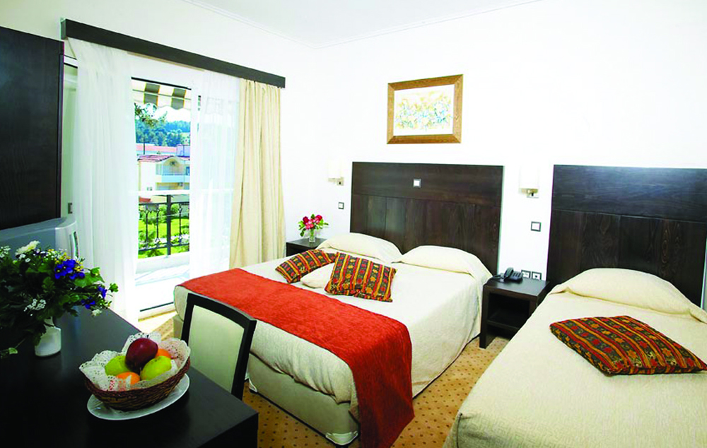 Family Room- Soba otvorenog tipa, površine 20-23 m², opremljena bračnim ili dva odvojena kreveta i krevetom na sprat za decu, sopstvenim kupatilom i nameštenim balkonom s pogledom na unutrašnjost ili dvorište.