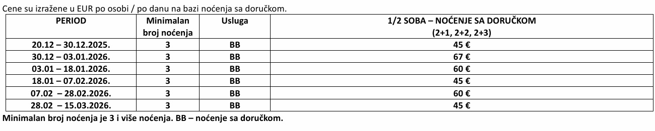 Cenovnik br.1 za Zimu 2025/2026 Hotel Nebojša Jahorina od 14.10.2025.