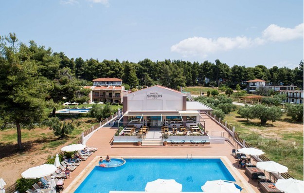 Hotel Simeon 3* Metamorfozis Sitonija je mali porodični hotel, nalazi se u srcu Sitonije, u prelepom okruženju malog mesta Metamorfosi. Svojim gostima nudi apsolutni mir i opuštanje na 70-ak metara od mora. Hotel ima ukupno 90 soba raspoređenih u 6 zgrada.