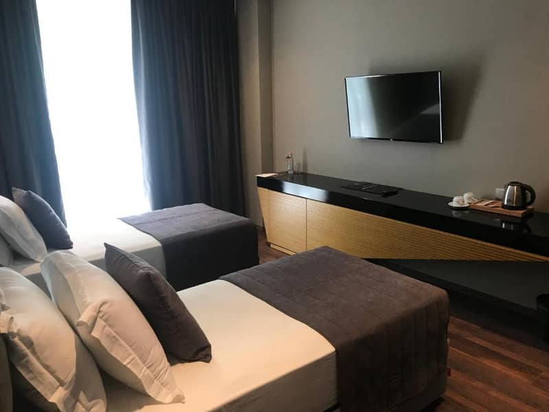 Hotel ima 80 klimatiziranih soba koje su moderno opremljene i imaju TV ravnog ekrana sa satelitskim programima, kuvalo za vodu, radni stol, ormar i vlastito kupatilo s bideom, fenom za kosu, tušem i besplatnim kozmetičkim priborom. Sve sobe imaju bočni pogled na more i balkon.