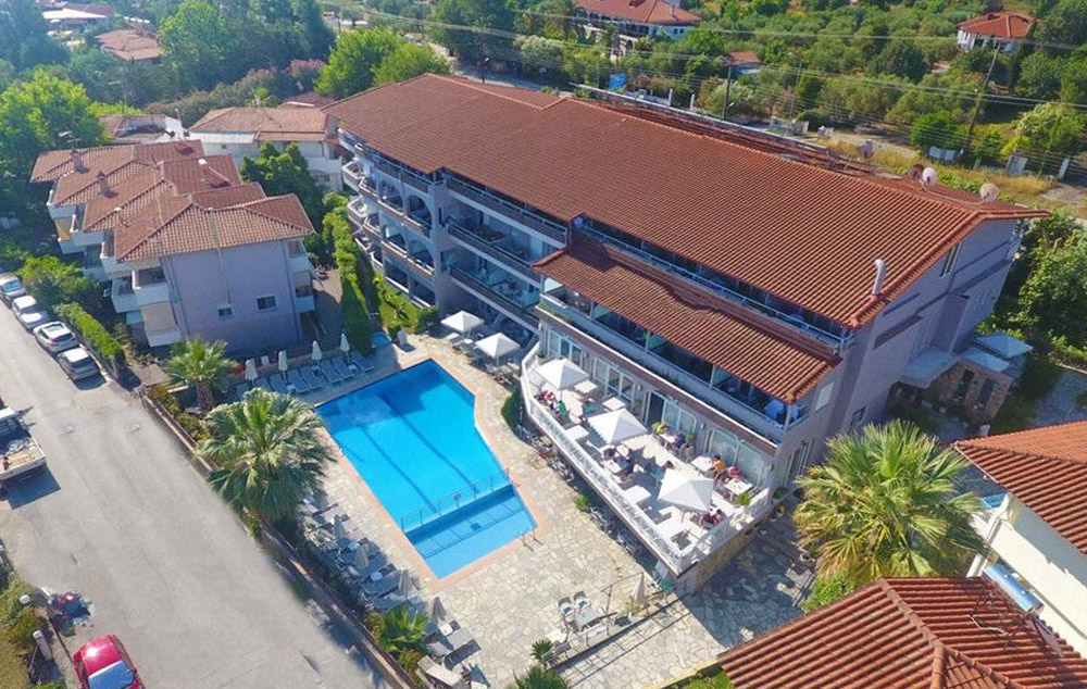 Hotel Tropical 4* Hanioti je smešten u izuzetno lepom okruženju, sa palmama, obiljem zelenila i cveća, mala je oaza sa lepim, velikim bazenom, lociran na oko 400 metara od plaže i na oko 350 metara od centra Haniotija. Hotel Tropical 4* Hanioti SADRŽAJ: Dvorište, veliki bazen sa odvojenim delom za decu, ležaljke, suncobrani, recepcija, lobi bar, restoran, lift, internet veza na recepciji, mogućnost parkiranja.