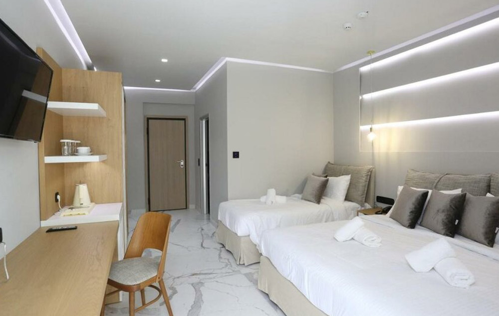 Family Room- 28 m2, nedavno renovirane, ove sobe imaju odvojenu spavaću sobu sa velikim bračnim krevetom i manju sobu sa 2 singl kreveta za decu.