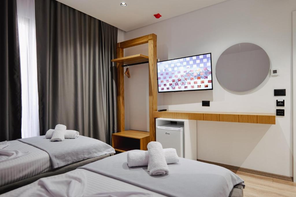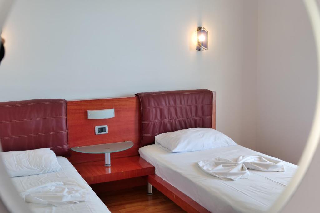 Hotel raspolaže sa ukupno 40 smeštajnih jedinica, uključujući standardne sobe za 2–4 osobe i deluks sobe namenjene parovima. Sve sobe imaju balkon, klima-uređaj, TV, mini frižider, garderober i sopstveno kupatilo sa tuš kabinom i peškirima. Većina soba pruža prelep pogled na Jonsko more.