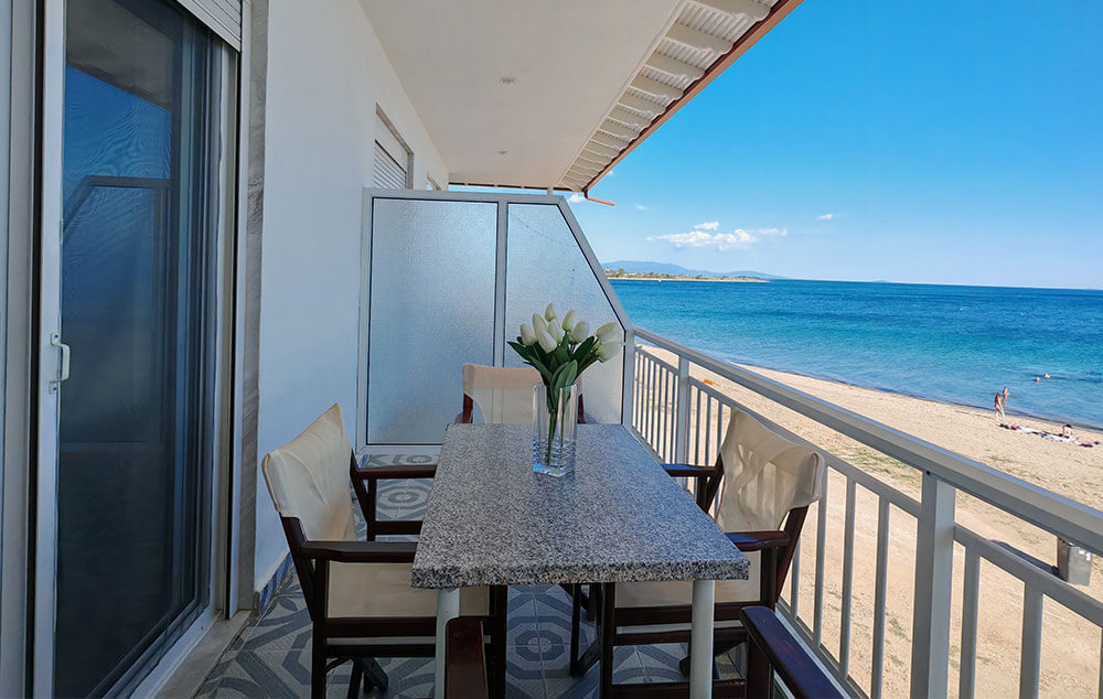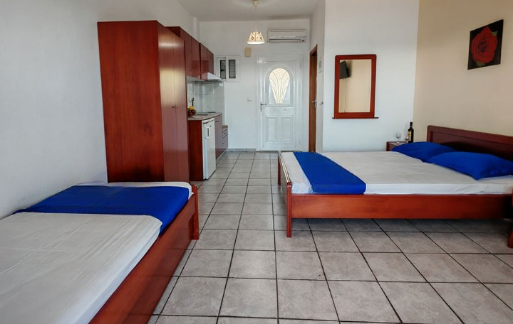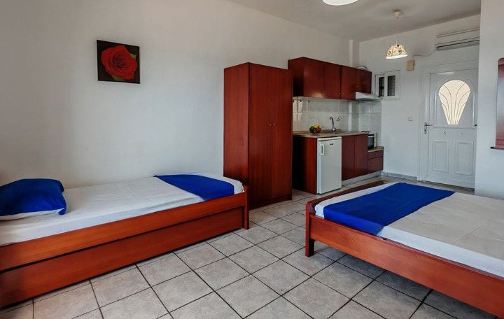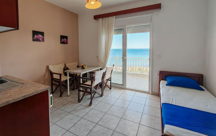 Kuća Alexandra Psakudija nalazi se na samoj plaži mesta Psakoudia i odlikuje se terasama koje imaju direktan pogled na more. Četvorokrevetni studiji i apartmani nalaze se na prvom spratu i prizemlju. Kuća ima signal za bežični internet, a smeštajne jedinice imaju TV i klima uređaj čije je korišćenje uključeno u cenu u julu i avgustu.