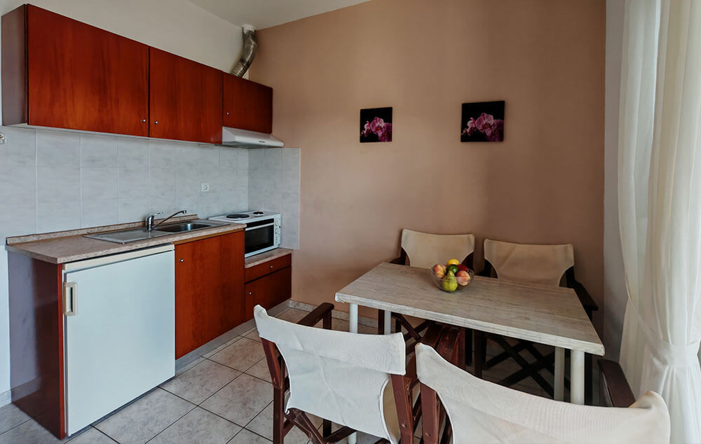 Svi studiji i apartmani imaju terasu, wc i tuš sa toplom i hladnom vodom, sto i stolice, orman, čajnu kuhinju sa frižiderom koja je opremljena prema broju osoba (tanjiri, čaše, šolje, escajg, šerpa, tiganj, džezva za kafu ). Promena posteljine je na pola smene, za smene duže od 8 noći. U većini objekata domaćini kuća na dan zamene posteljine dostavljaju čistu posteljinu koju gosti sami menjaju kao što i sami održavaju higijenu smeštajne jedinice tokom svog boravka. U pojedinim objektima, osoblje kuće ulazi u smeštajne jedinice i samostalno vrši zamenu posteljine. Pored standardne opreme, smeštajne jedinice mogu imati i određenu opremu koja ih izdvaja u odnosu na ostale smeštajne jedinice iz ponude. U cenovnicima se pored naziva određenih kuća nalaze brojevi.