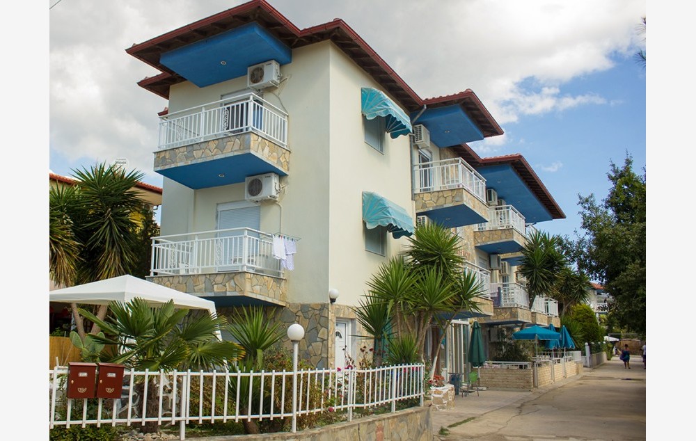 Kuća Anna Toroni nalazi se na oko 40m od mora. U ponudi su studiji koji se nalaze u prizemlju, na prvom i drugom spratu za dve do tri osobe. Studiji u prizemlju su cenovno izdvojeni i povoljniji su. Kuća ima SAT TV, signal za besplatno korišćenje bežičnog interneta kao i klima uređaje čije je korišćenje uključeno u cenu u julu i avgustu. U dvorištu kuće postoji parking sa ograničenim brojem parking mesta koji se doplaćuje 5 eur po danu vlasnicima kuće. Ne postoji mogućnost rezervacije parkinga već se prilikom dolaska na upit proverava raspoloživost.