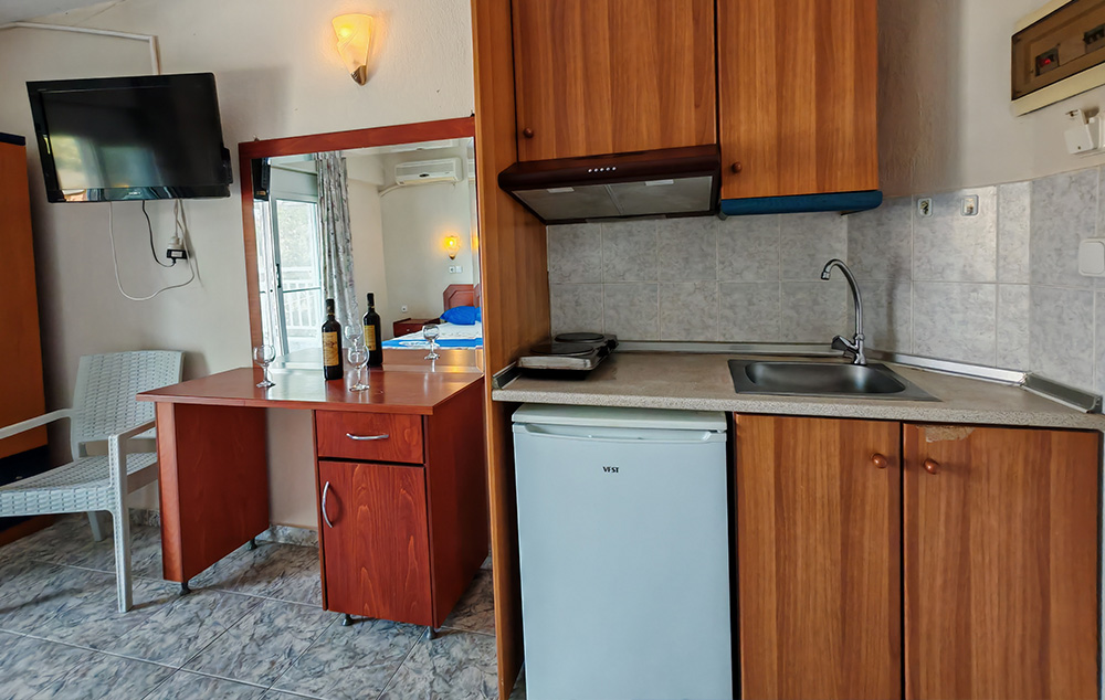 Svi studiji i apartmani imaju terasu, wc i tuš sa toplom i hladnom vodom, sto i stolice, orman, čajnu kuhinju sa frižiderom koja je opremljena prema broju osoba (tanjiri, čaše, šolje, escajg, šerpa, tiganj, džezva za kafu ). Promena posteljine je na pola smene, za smene duže od 8 noći. U većini objekata domaćini kuća na dan zamene posteljine dostavljaju čistu posteljinu koju gosti sami menjaju kao što i sami održavaju higijenu smeštajne jedinice tokom svog boravka. U pojedinim objektima, osoblje kuće ulazi u smeštajne jedinice i samostalno vrši zamenu posteljine. Pored standardne opreme, smeštajne jedinice mogu imati i određenu opremu koja ih izdvaja u odnosu na ostale smeštajne jedinice iz ponude. U cenovnicima se pored naziva određenih kuća nalaze brojevi.