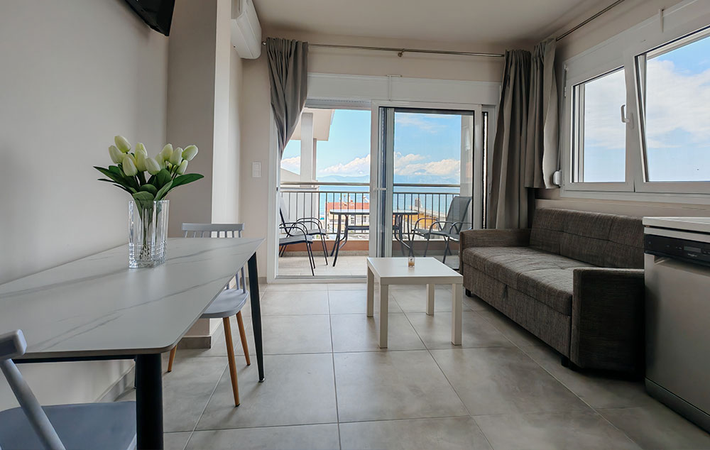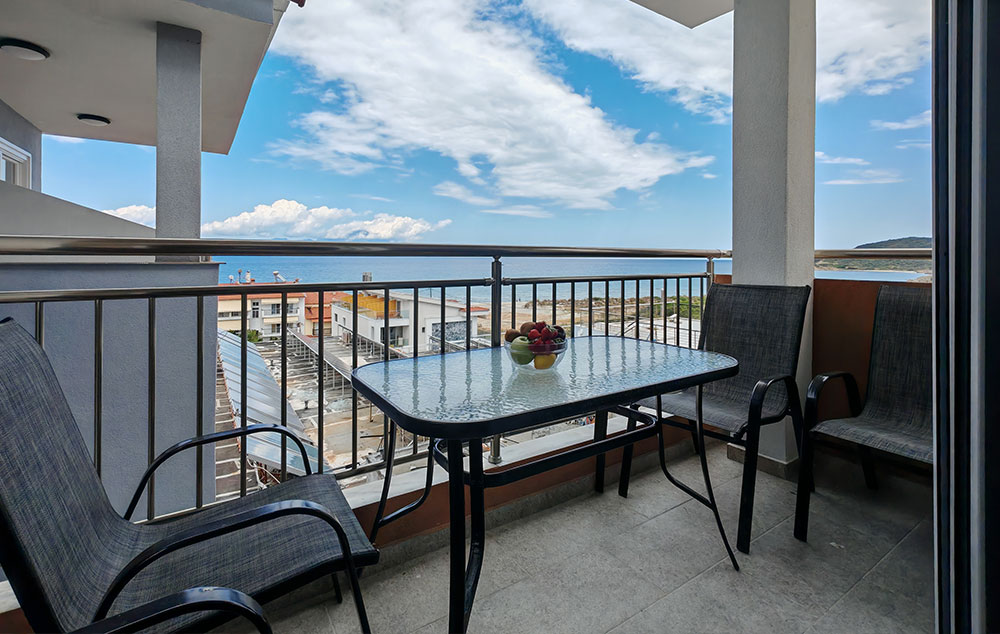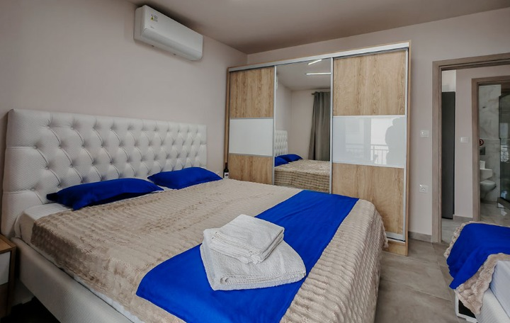 Petokrevetni superior apartman sa direktnim pogledom na more nalazi se na drugom spratu u kući F&M. Izdvaja se po opremljenosti kuhinje koja ima šporet sa 4 ringle i rernom kao i mašinu za pranje sudova i visokim frižiderom i zamrzivačem. Izdvaja se po opremljenosti kupatila sa tuš kabinom i mašinom za veš. U dnevnoj sobi se nalazi dvosed koji se pretvara u krevet na rasklapanje (širine 120 cm). U spavaćoj sobi se nalazi king size francuski krevet (širine 180 cm) i klasičan ležaj za jednu osobu. I dnevna soba i spavaća imaju svoju terasu. Pored svega navedenog izdvaja se po veoma izdašnom garderobnom prostoru gde se bez problema može raspakovati petočlana porodica jer za razliku od ostalih smeštaja ima američki plakar sa tri klizna dela kao i još jedan dvokrilni orman. Svaka soba ima TV i klima uređaj nove tehnologije Midea Breezless koji se može podesiti da klima radi bez stvaranja neprijatnog hladnog vazduha.
