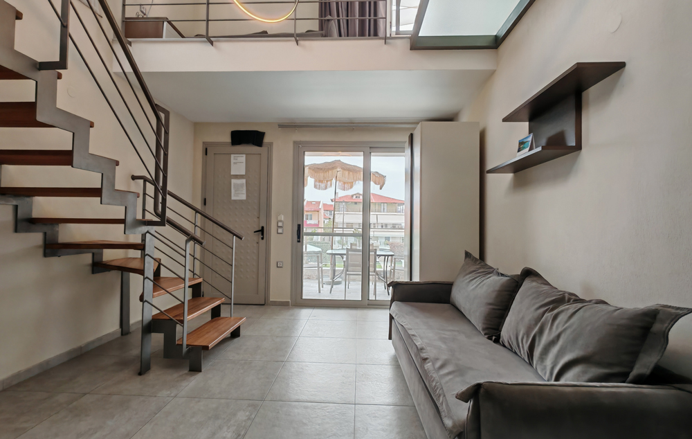 5. APARTMAN ILI STUDIO SA GALERIJOM – smeštajna jedinica u kući koja se razlikuje od gore opisanih, po galeriji, najčešće iznad kuhinjskog dela, povezana sa glavnim nivoom najčešće metalnim ili drvenim, uskim, strmim stepenicama. Između galerija i donjeg dela ne postoje vrata, kao što je to slučaj kod mezonete.