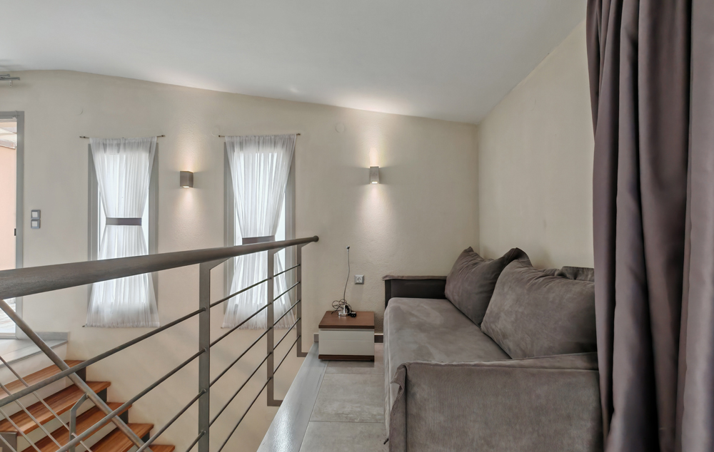 3. MEZONETA – smeštajna jedinica u kući na dva nivoa koja se sastoji od jedne ili dve spavaće sobe sa po jednim ili više ležajeva, dnevnog boravka u kojem se nalaze kuhinjski elementi i krevet ili više kreveta, kupatilo i terasa. Drugi, viši nivo ili sprat, su najčešće povezani stepenicama sa nižim nivoom.