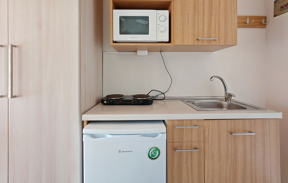 1. STUDIO – smeštajna jedinica u kući, bez predsoblja, u kojoj se u istom prostoru nalazi deo sa kuhinjskim elementima sa osnovnim priborom za jelo za odgovarajući broj osoba (prema broju standardnih ležajeva), krevet ili više kreveta, orman, zasebno kupatilo i terasa.