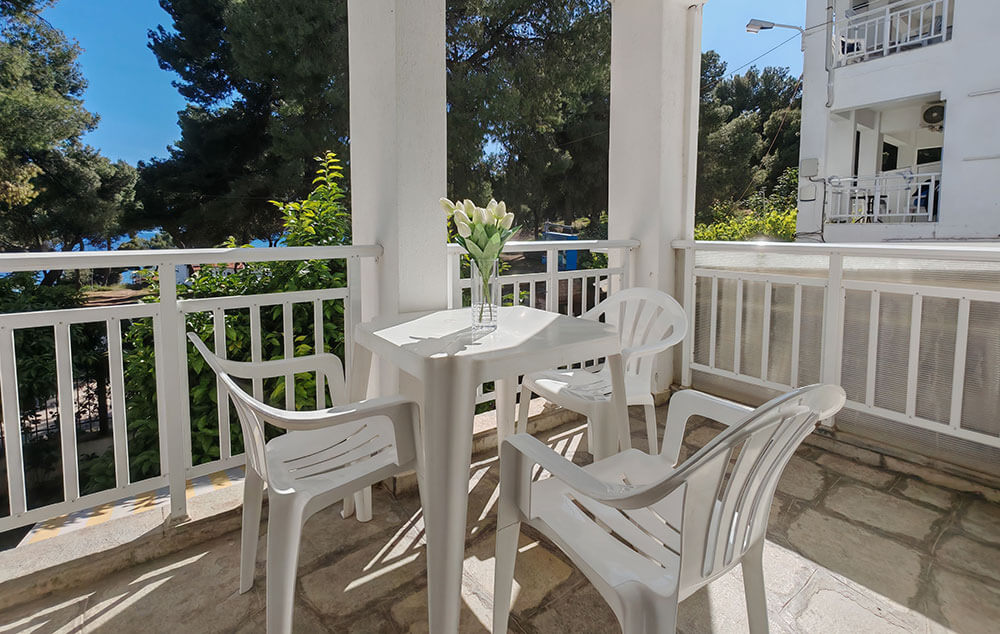 POSEBNE SKRAĆENICE: DM – terasa sa direktnim pogledom na more BM – terasa sa bočnim pogledom na more UT – ulaz preko terase ZT – zajednička terasa PT – prolazna terasa IT – izdvojena terasa BT – bez terase MTPZ – manja terasa pogled zid VTPZ – veća terasa pogled zid PZ – pogled zid NP – nisko prizemlje BK – bez kuhinje ECONOMY – uglavnom cenovno izdvojena, skromnija smeštajna jedinica sa određenim nedostacima kao što su npr. manja kvadratura studija, manja terasa, izdvojena terasa, pogled zid, ulaz preko terase, i slično.