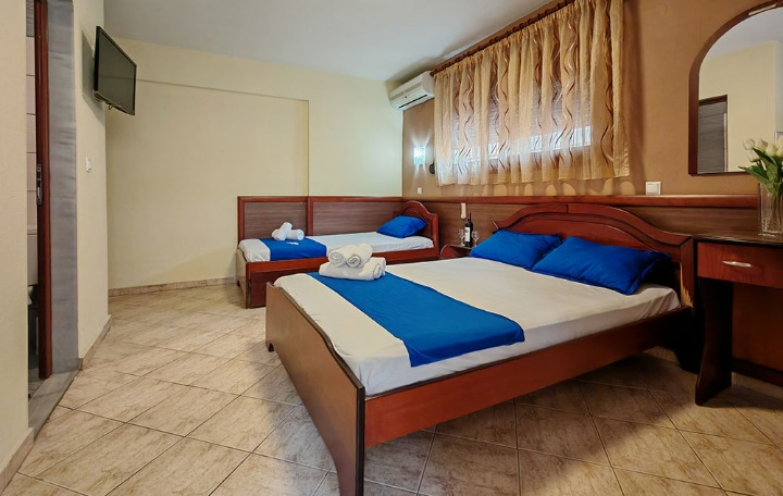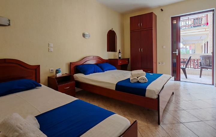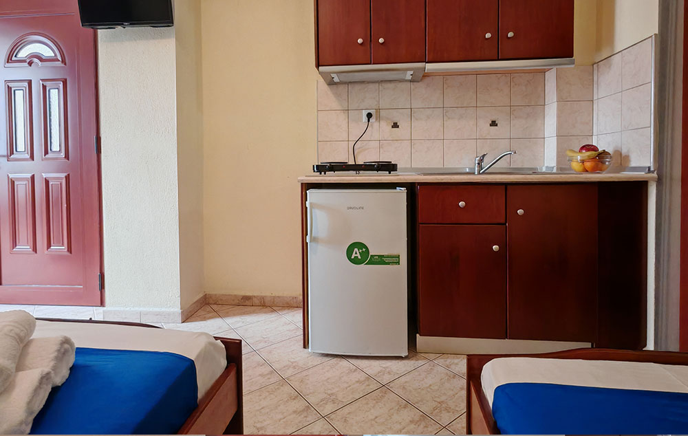 Najam studija ili apartmana Početak boravka je najranije u 15:00h prvog dana, a završava se najkasnije u 09:30h poslednjeg dana smene boravka. Cena uključuje troškove električne energije, tople i hladne vode, korišćenje inventara, komunalnu taksu i porez. Sastavni deo inventara je posteljina (promena jednom u toku smene), ali ne i peškiri, toalet papir, sapuni, sredstva za održavanje čistoće ili pranje posuđa. U toku boravka gosti sami iznose smeće i održavaju čistoću, a u obavezi su na domaćinski odnos prema inventaru i opremi, kao i na poštovanje kućnog reda. Eventualne štete prouzrokovane nepažnjom, treba prijaviti domaćinu ili predstavniku i iste nadoknaditi. Pojedini standardi izgradnje i opremanja smeštajnog objekta i jedinica nisu adekvatni našim, na šta Organizator nije mogao imati uticaja. Kuhinje su većinom opremljene samo elemantarnim inventarom za pripremanje, konzumiranje i čuvanje hrane, sa time da je frižider uglavnom manji, zapremine 140l. Rešo je najćešće sa dva grejna tela, bez rerne. Kupatila su uvek sa tušem (sa ili bez tuš kade), sa odvodnim cevima malih profila i ponekad skromnih dimenzija. Kao u većini delova Grčke voda ni na Halkidikiju nije za piće. Na kvalitet, boju i izgled vode iz vodovoda vlasnici kuća ne mogu imati uticaja. Lokalni vodovod garantuje tehničku ispravnost vode za potrebe održavanja lične higijene. U nemogućnosti da u opisima objekata detaljno navede sve karakteristike svih smeštajnih jedinica Organizator predlaže da korisnici usluga zatraže precizne informacije o istima, pre prijave za izabrani studio ili apartman.