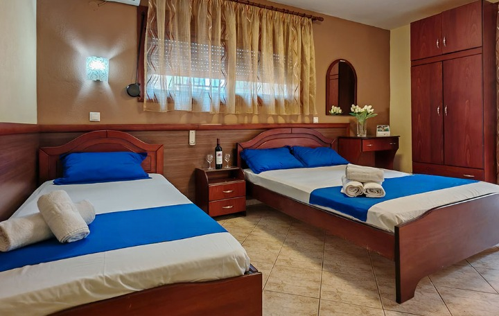 Spratnost Postoje određene kuće gde zbog toga što su izgrađene na kosom terenu ili iz drugog razloga spratnost ulaska u apartman i spratnost terase istog apartmana nisu isti. U ovakvim kućama prikazana spratnost će se odnositi na spratnost terase određene smeštajne jedinice. Oprema Svi studiji i apartmani imaju terasu, wc i tuš sa toplom i hladnom vodom, sto i stolice, orman, kuhinju sa frižiderom koja je opremljena prema broju osoba (tanjiri, čaše, šolje, escajg, šerpa, tiganj, djezva za kafu). Promena posteljine je na pola smene, za smene duže od 7 noći. Domaćini kuća na dan zamene posteljine dostavljaju čistu posteljinu koju gosti sami menjaju kao što i sami održavaju higijenu apartmana tokom svog boravka. Pored standardne opreme apartmani mogu imati odredjenu opremu koja ih izdvaja u odnosu na ostale apartmane iz ponude. U cenovnicima se pored naziva određenih kuća nalaze brojevi. Brojevi su konkretni brojevi određenog studija ili apartmana koji se u određenom smislu razlikuje u odnosu na studije/apartmane istog tipa u okviru kuće. To se može odnositi na veličinu ili lokaciju terase, kao i na prostranost samog apartmana, zbog koje i postoji razlika u ceni u odnosu na ostale iz određene kuće. Molimo goste da ponesu svoje peškire, s obzirom da peškiri nisu deo standardine opreme studija/ apartmana.