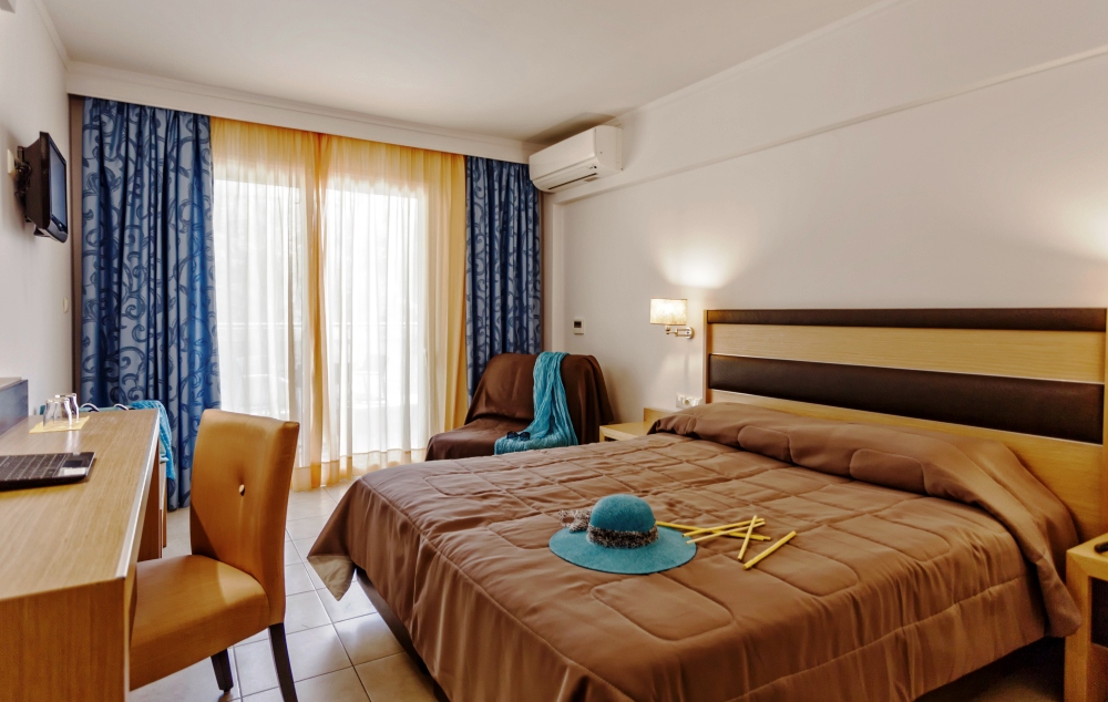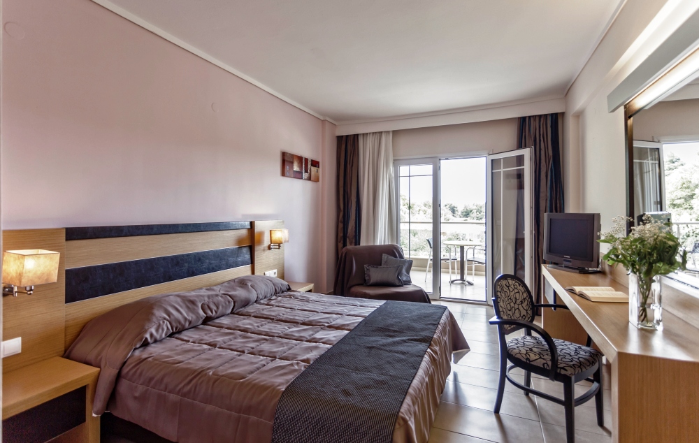 Deluxe Room Partial Sea View-25 m2, bočni pogled na more, renoviran 2019. godine, ima bračni ili dva odvojena kreveta i kauč na razvlačenje za dete, pogodan za 2-3 osobe.