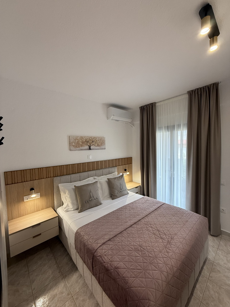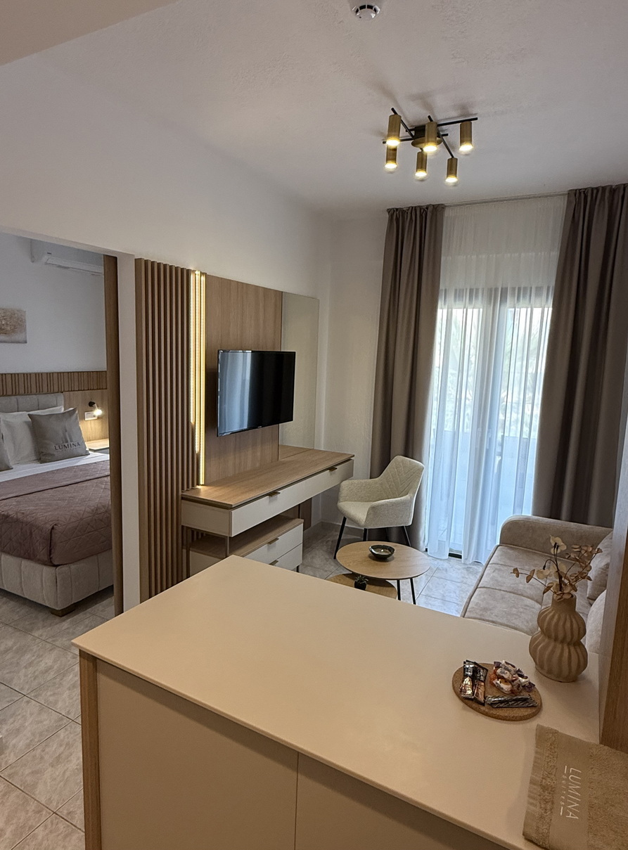 Lumina Suites Psakudija nalazi se u najlepšem delu Psakudije na samo 90 metara od mora i blagom uzvišenju koje većini studija i apartmana pruža pogled na more. Kuća je do sad bila poznata pod nazivom Pandora ali od sezone 2025 goste dočekuje u potpuno novom i renoviranom izdanju. Lumina Suites Psakudija ima SAT TV, besplatan signal za korišćenje bezičnog interneta kao i klima uređaj čije je korišćenje uključeno u cenu. Sobe broj 3, 4, 5 i 6 su označene kao smeštajne jedinice sa izdvojenom terasom u cenovniku i umesto terase na raspolaganju im je letnjikovac gde će imati svoje izdvojeno mesto za stolove i stolice. Za period boravka do 7 noći organizovano je čišćenje i menjanje posteljina na pola smene, a za duži period boravka predviđeno je čišćenje i menjanje posteljine 2 puta u toku smene.