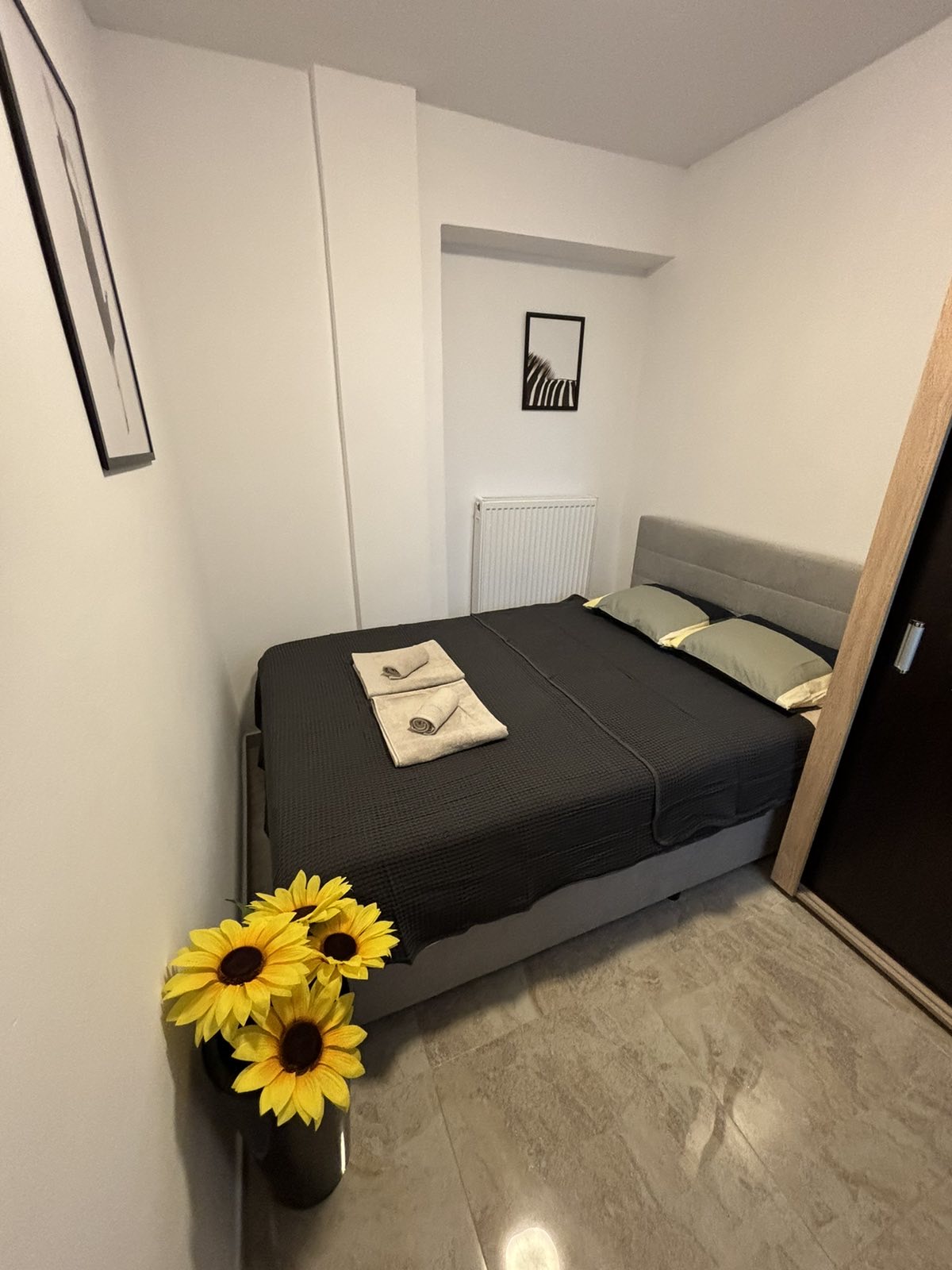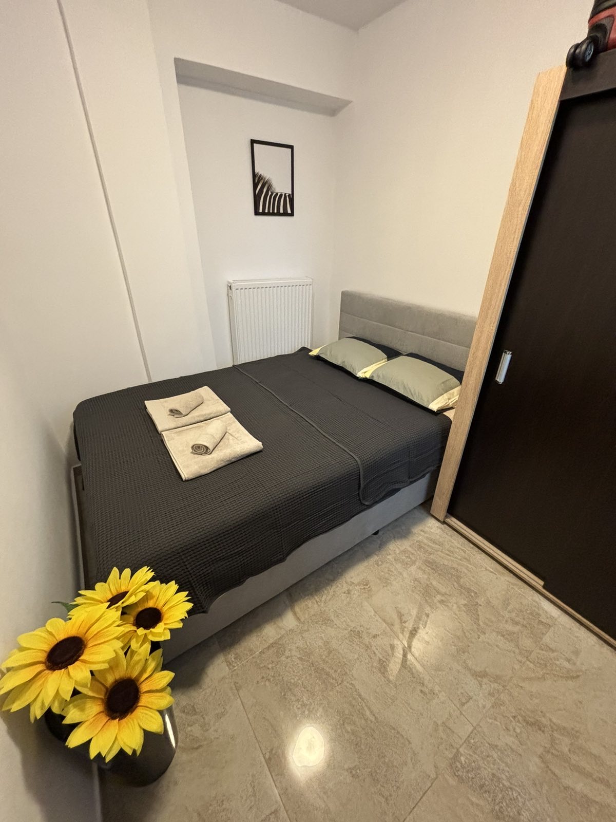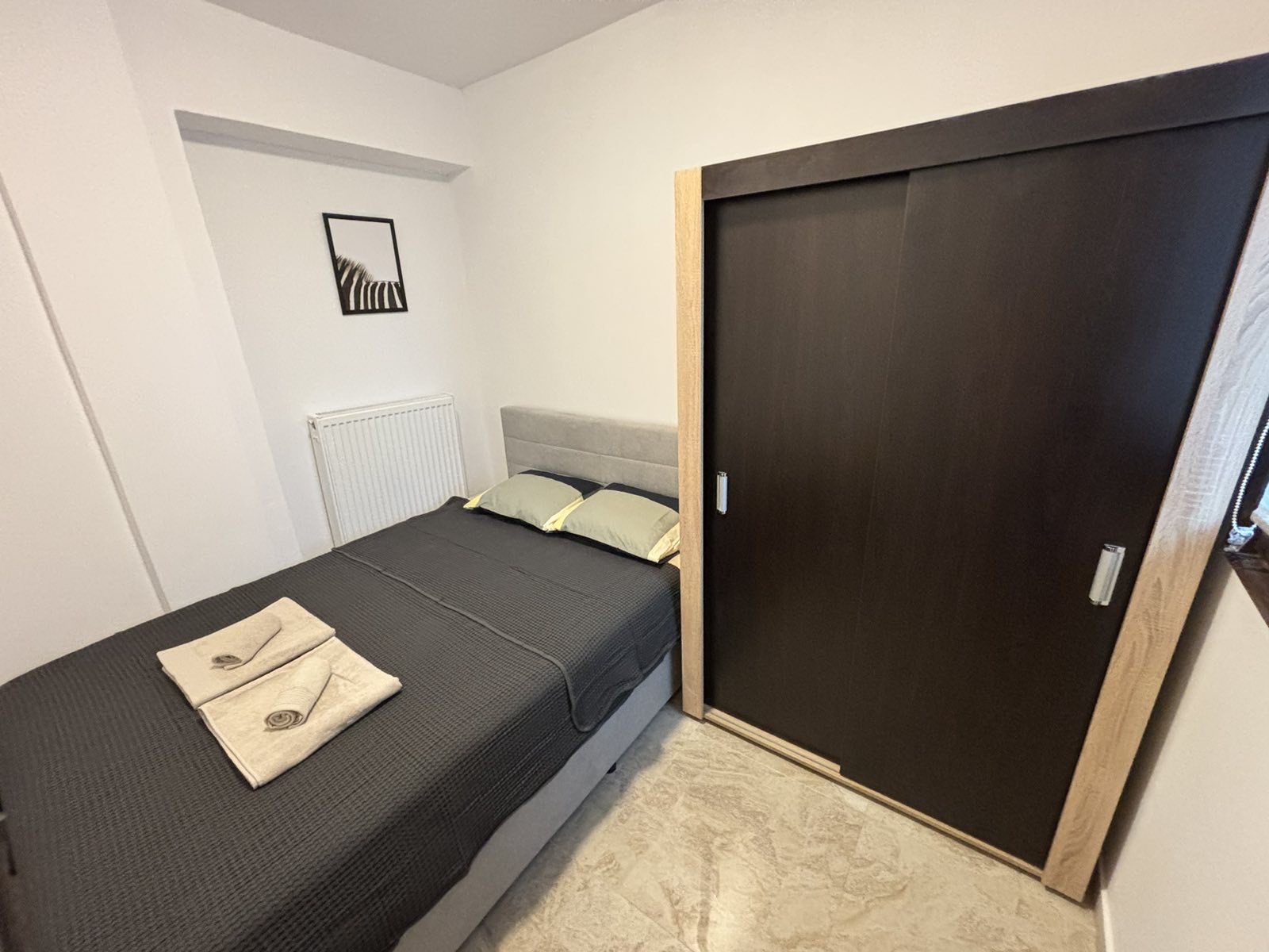 Struktura četvorokrevetnog apartmana: sastoji se od spavaće sobe sobe u kojoj se nalazi francuski ležaj (soba nema prozor) i od dnevnog boravka sa ugaonom garniturom na razvlačenje u kome se nalazi i kuhinjski deo, kupatila i terase, kapaciteta 4 osobe. Čajna kuhinja od opreme ima ravnu ploču sa dve ringle, frižider sa delom za duboko zamrzavanje, sudoperu i elemente sa osnovnim kuhinjskim inventarom.U kupatilu ima tuš kada. Terasa ima pogled more.