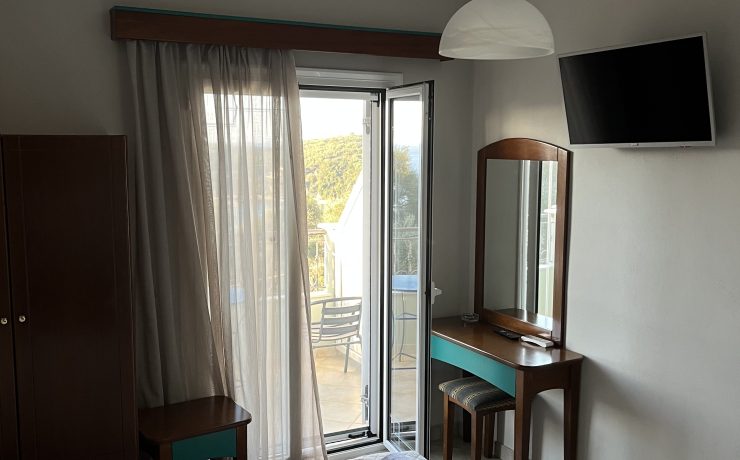 Vila raspolaže potpuno opremljenim i veoma komfornim studijima koji se nalaze na prvom, drugom i trećem spratu. Sa drugog i trećeg sprata se pruža prelep pogled na more i zaliv Valtos. Na prvom spratu se nalazi veoma prostrana zajednička terasa odakle se pruža samo delimičan pogled na more, zbog borove šume koja se nalazi ispred vile.