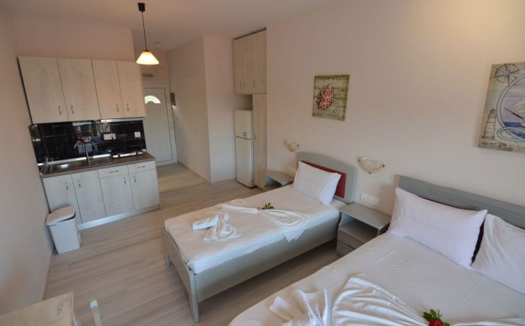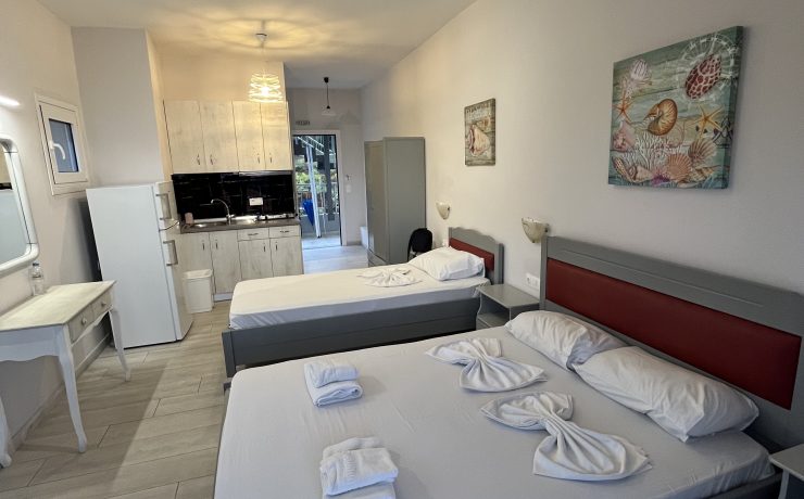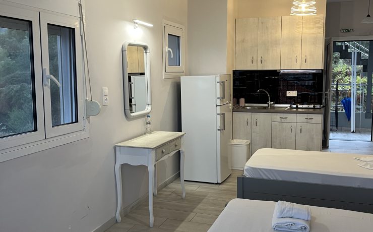 1/2, 1/3, 1/4 studio – smeštajna jedinica u vili u kojoj se u istom prostoru nalazi deo sa kuhinjskim elementima sa osnovnim priborom za jelo za odgovarajući broj osoba (prema broju ležajeva), kreveti, orman, kupatilo i terasa. 1/4 studio može da sadrži francuski ležaj (grčki standard) i krevet na sprat, 1/2 odnosno 1/3 studiji sadrže francuski ležaj i/ili singl ležaj (grčki standard).