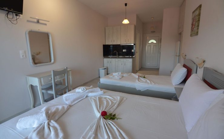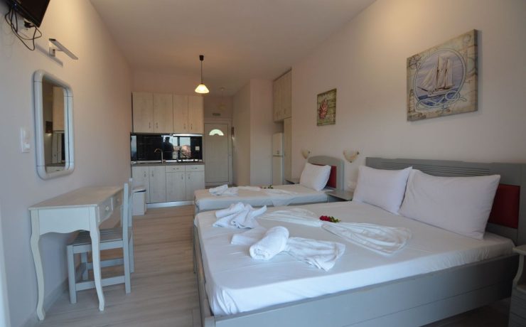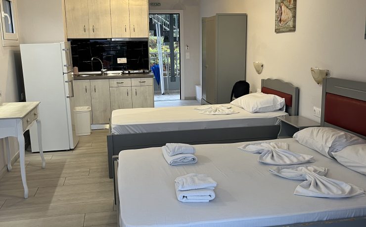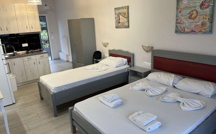 Raspolaže prostranim trokrevetenim studijima koji se nalaze na drugom i trećem spratu vile Cozy. Potpuno novi, renovirani, prostrani i veoma komforni studiji sa prvitanim terasama sa kojih se preuža fantastični pogled, kako na more tako i na prelepu tvrdjavu u Pargi koji naročito dolazi do izražaja noću kada je tvrdjava osvetljena. Boravak na terasi će svakako biti jedan od omiljenih momenata i uspomena sa letovanja koje se pamti.