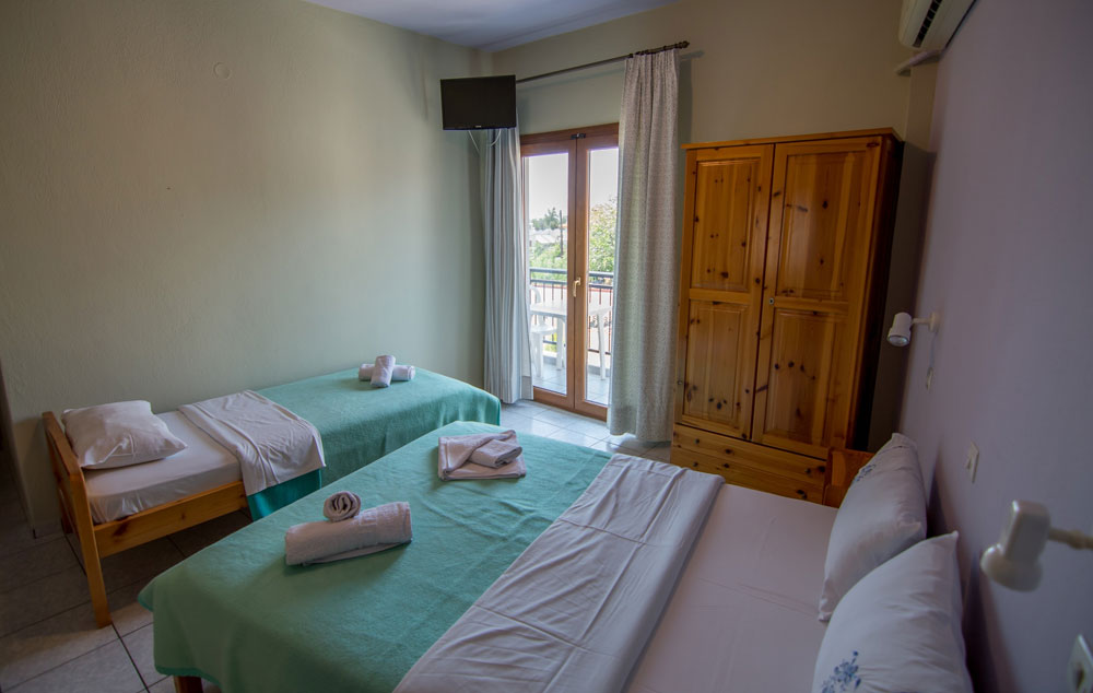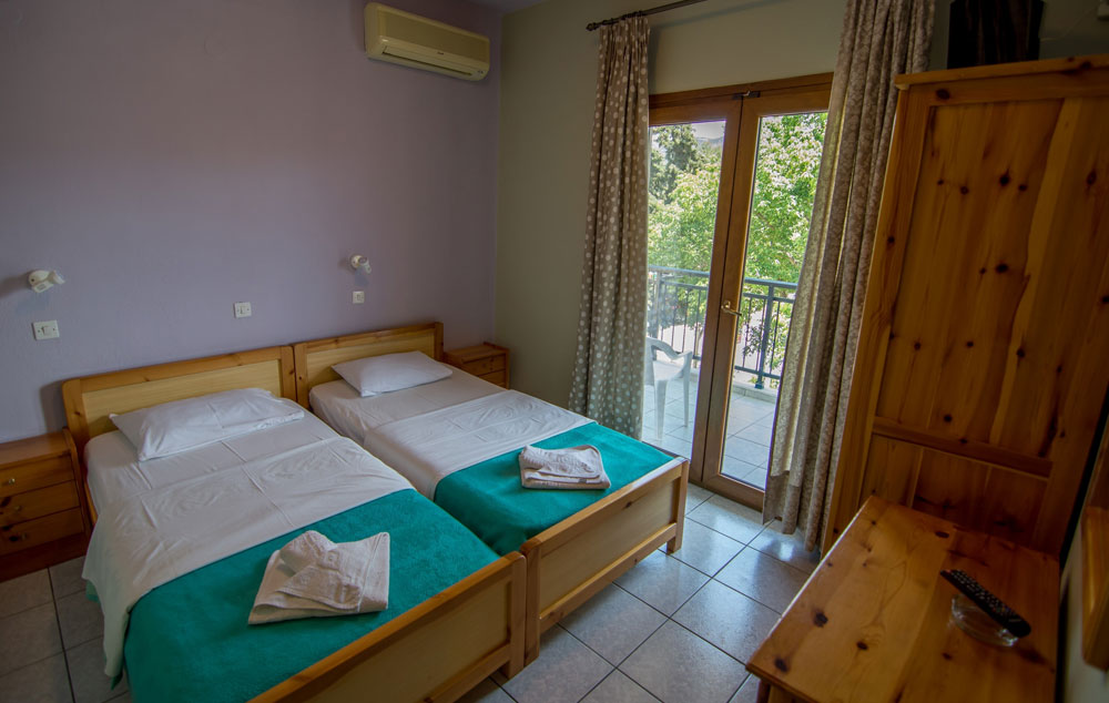 Vila Eirini Klimis Potos je udaljena 200 metara od šetališta I 200 metara od gradske plaže. Vila Eirini Klimis Potos poseduje dvokrevetna i trokrevetna studija, koji su smešteni na prvom i drugom spratu. Sve smeštajne jedinice su renovirane i imaju opremljen kuhinjski deo, kupatilo, terasu, peškire, WIFI, TV, klima uređaj (uz doplatu na licu mesta od 5€ dnevno).