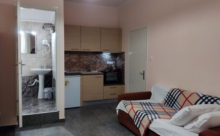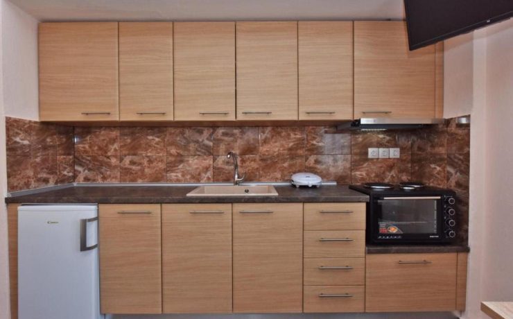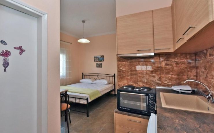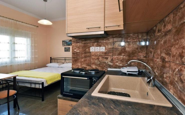 Poseduje kompletno opremljenu kuhinju novim kuhinjskim aparatima, mini električnim šporetom sa aspiratorom i frižiderom, LCD TV, Wi-Fi konekciju i klima uređaj (uračunato u cenu). Svaki studio poseduje novo kupatilo sa tušem. Pojedini studiji nemaju sopstvenu terasu, već koriste garnituru za sedenje u dvorištu, namenjene njihovom studiju (raspitati se u agenciji). Promena posteljine je na 5 dana. Peškira nema, tako da svaki gost treba da ponese sopstvene peškire za ličnu upotrebu.