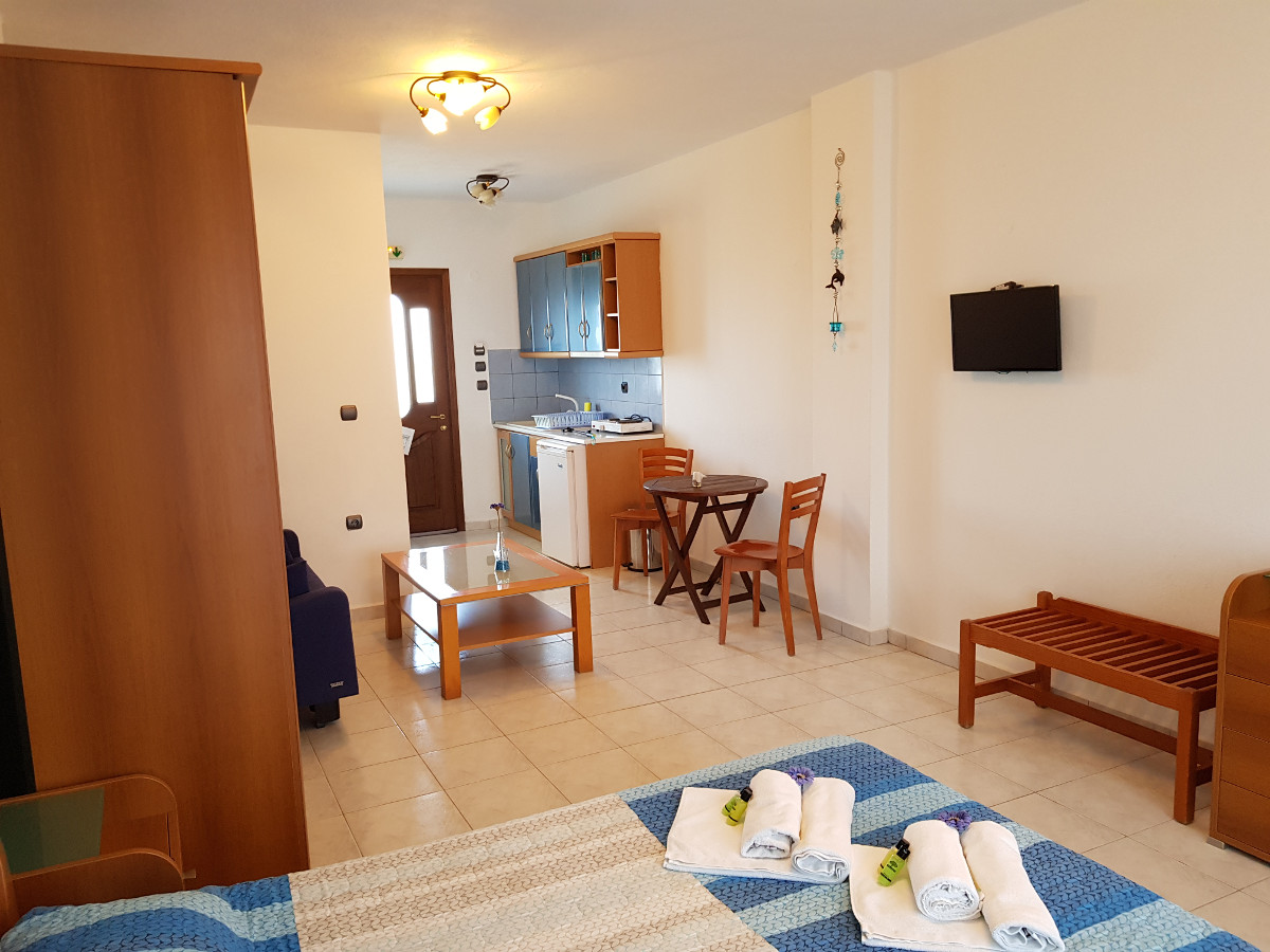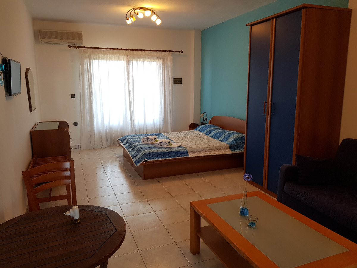 Svaki studio poseduje francuski ležaj, sofu na rasklapanje, baštensku garnituru, terasu sa predivnim pogledom, TWC, kompletno opremljenu kuhinju, klimu (bez doplate), wi-fi (bez doplate), peškire, TV, sto za ručavanje.