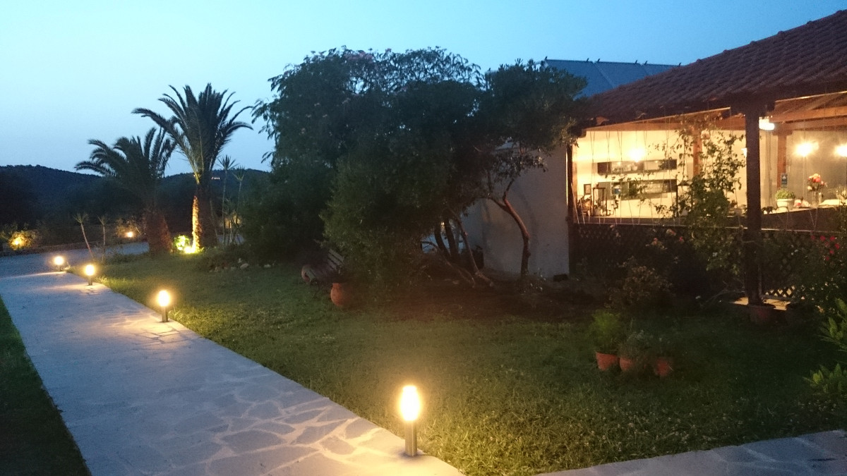 Vila Erotokritos Lux Amuljani nalazi se na 400 metara od plaže Alikes kao i na 700 metara prečicom zemljanim putem od centra samog mesta. U svom posedu vila Erotokritos Lux ima veliko travnato dvorište sa klackalicama i ljuljaškama za decu kao i veliki parking prostor, deo za pravljenje roštilja dostupan bez doplate gostima vile. Napomena da je poslednjih 300 metara prilaza do vile Erotokritos Lux zemljani put.
