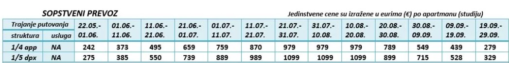 Jedinstvena cena aranžmana – sopstveni prevoz ne obuhvata:
