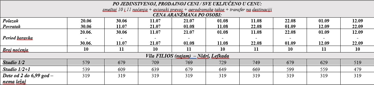 PROGRAM PUTOVANJAAUTOBUSOM BEOGRAD – SIVOTA/PARGA/LEFKADA– BEOGRAD: