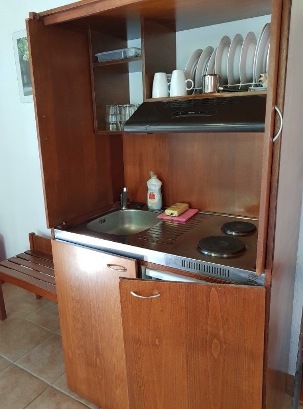 1/2 studio – u jednoj prostoriji čajna kuhinja i bračni ležaj ili dva obična ležaja.