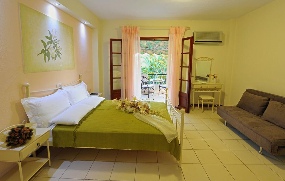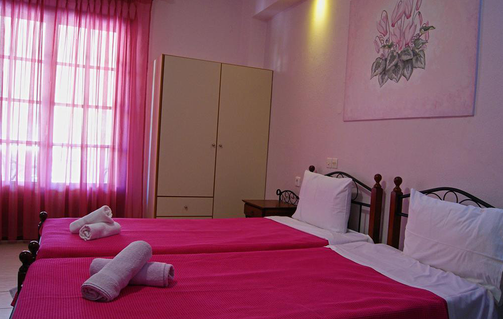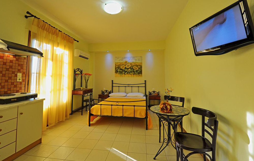 Opis: Smeštajne jedinice u našoj ponudi su dvokrevetni i trokrevetni studiji, kao i jedan promo studio, a nalaze se u prizemlju i na drugom spratu . Svaki studio poseduje opremljen kuhinjski deo, kupatilo/wc, peškire, terasu (osim promo studia), TV, WiFi internet i klima uređaj (uz doplatu na licu mesta od 5€ dnevno). Promo studio nema terasu, već se garnitura za sedenje nalazi u zajedničkom dvorištu.