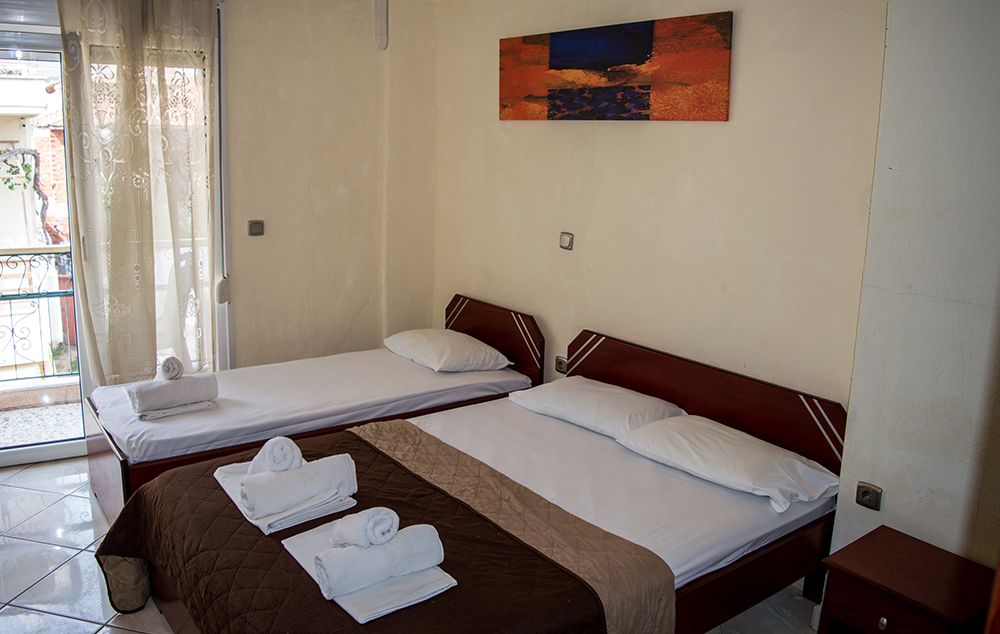 Vila IO Potos se nalazi u samom centru Potosa, 100m od plaže, na početku pešačke zone, u kojoj su pekare, prodavnice, super marketi, taverne i restorani.