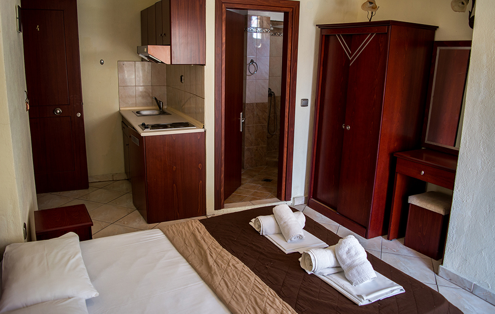 • Studio je smeštajna jedinica koja se sastoji od kupatila (tuš/WC) i jedne prostorije u kojoj se nalazi naznačeni broj ležaja i kuhinjski deo koji je opremljen rešoom, frižiderom i osnovnim posuđem