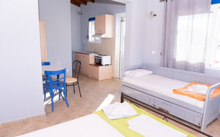 1/2, 1/3, 1/4 studio – smeštajna jedinica u vili u kojoj se u istom prostoru nalazi deo sa kuhinjskim elementima sa osnovnim priborom za jelo za odgovarajući broj osoba (prema broju ležajeva), kreveti, orman, kupatilo i terasa. 1/4 studio može da sadrži francuski ležaj (grčki standard) i krevet na sprat, 1/2 odnosno 1/3 studiji sadrže francuski ležaj i/ili singl ležaj (grčki standard).