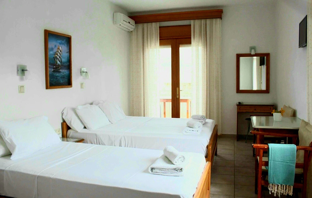 Vila Mesimvria Golden Beach Tasos je udaljena oko 350m od centra letovališta I oko 450m od plaže Tasosa. Vila Mesimvria Golden Beach poseduje dvokrevetna i trokrevetna studija, sa mogućnošću dodavanja pomoćnog ležaja. Sve smeštajne jedinice su u prizemlju, na prvom i drugom spratu i poseduju čajnu kuhinju, kupatilo/wc, peškire, terasu, WiFi internet, TV, klima uređaj (uz doplatu na licu mesta od 7e dnevno). Najbliži market je udaljen 100m od vile.