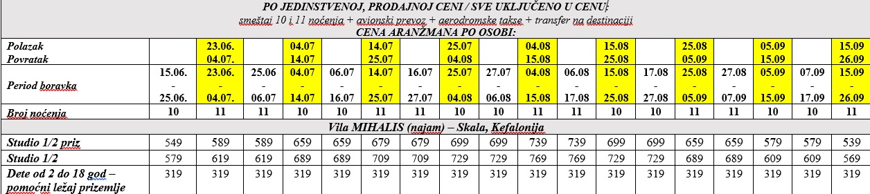 *Čarter let avionom, avio kompanijom Air Serbia, na relaciji Beograd – Argostoli – Beograd.