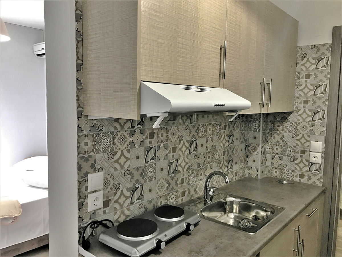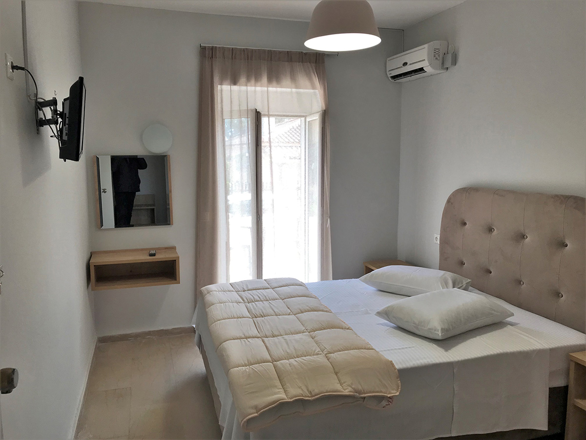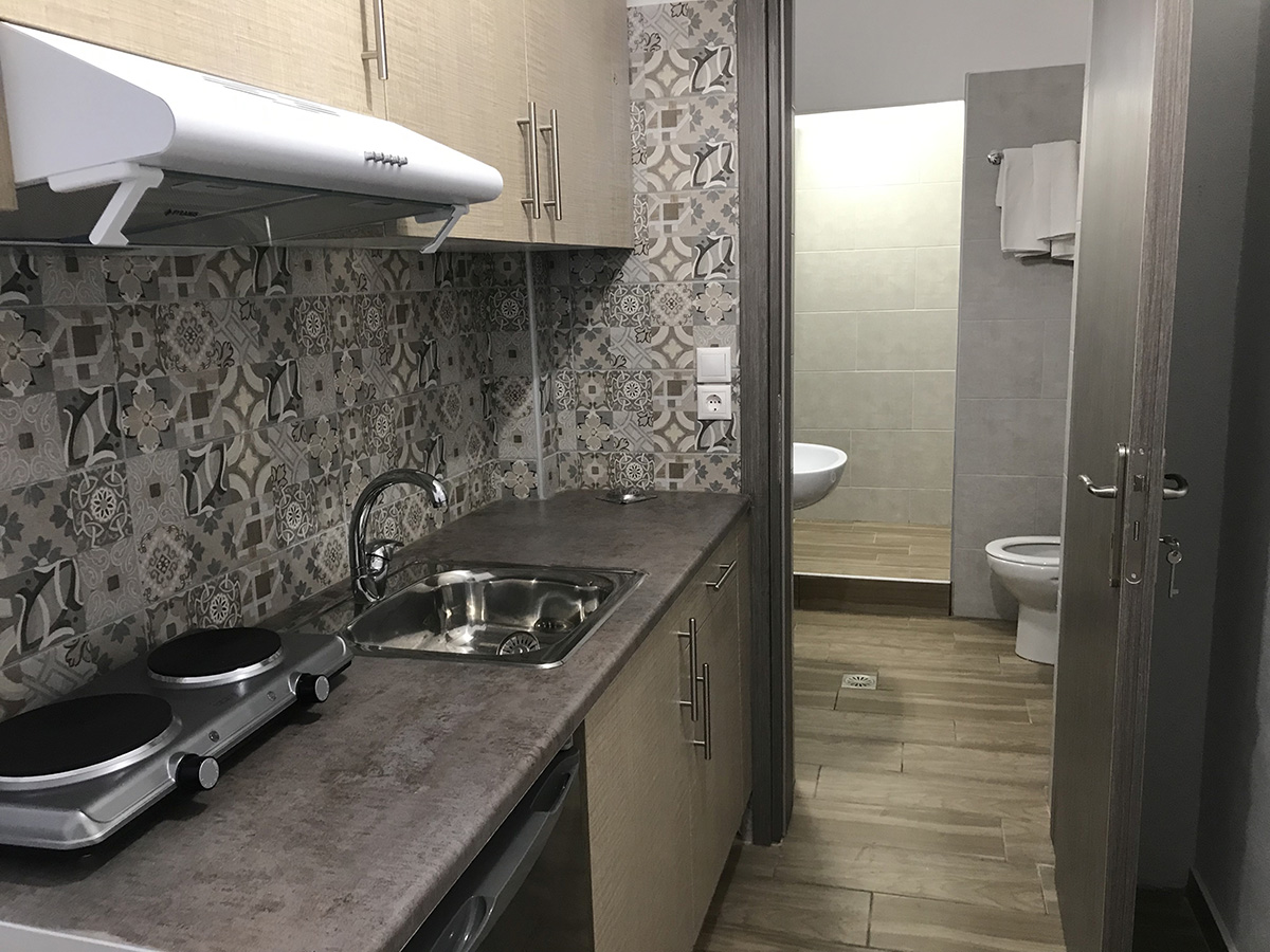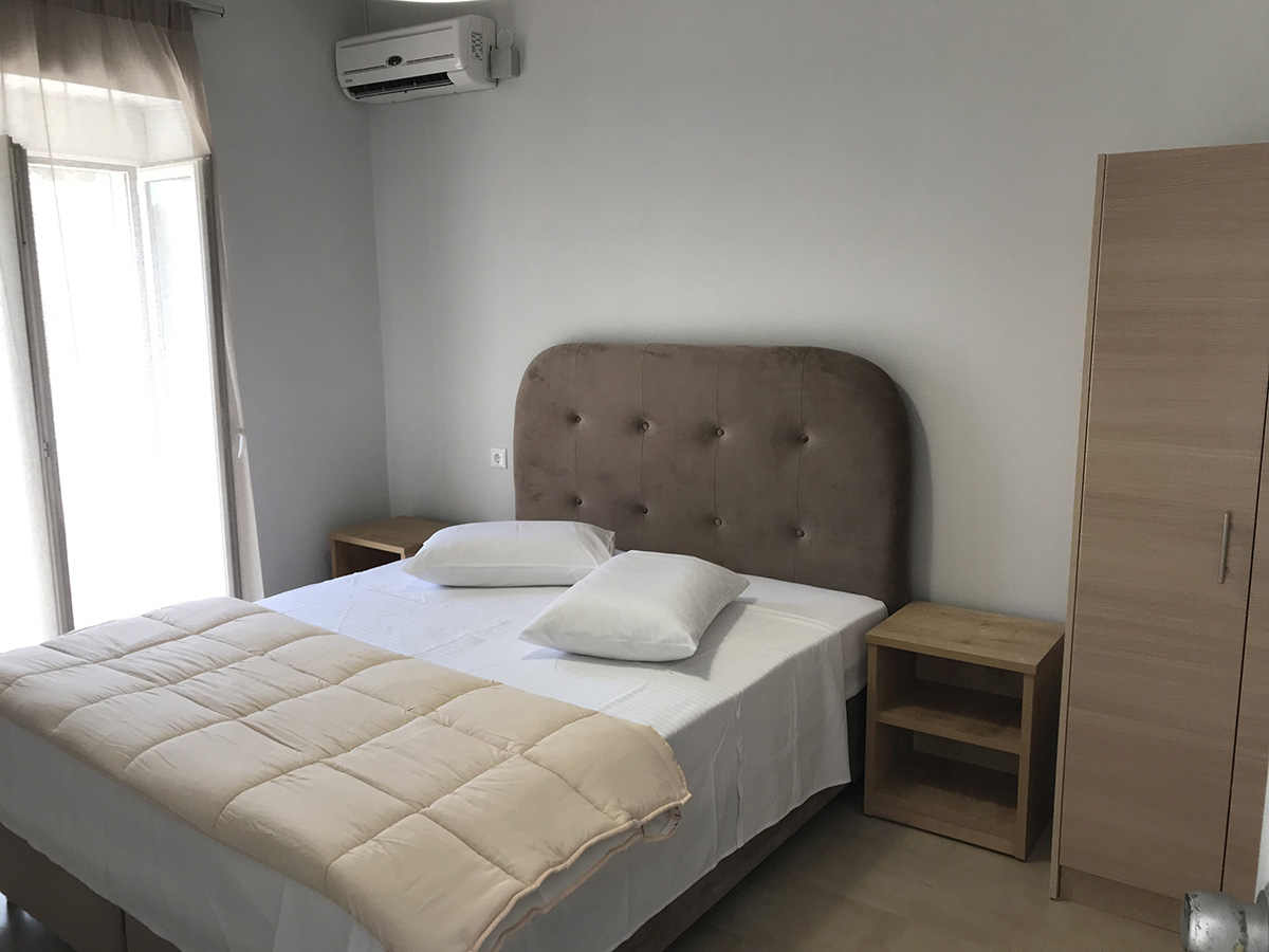 DVOKREVETNI STUDIJI: Dvokrevetni studiji se nalaze u prizemlju i prvom spratu ove vile. Svaki studio poseduje ili dva standardna singl ležaja (spojena ili odvojena), ili francuski ležaj, noćni stočić, klima uređaj (doplata na licu mesta), internet konekcija (ne odgovaramo za brzinu i protok signala). Svaki studio poseduje i kuhinjski deo sa rešoom, sudoperom i aspiratorom, kao i komplet posuđe za dve osobe. Kupatila su opremljena sa wc/tuš. Balkoni su opremljeni sa stolom i 2 stolice.