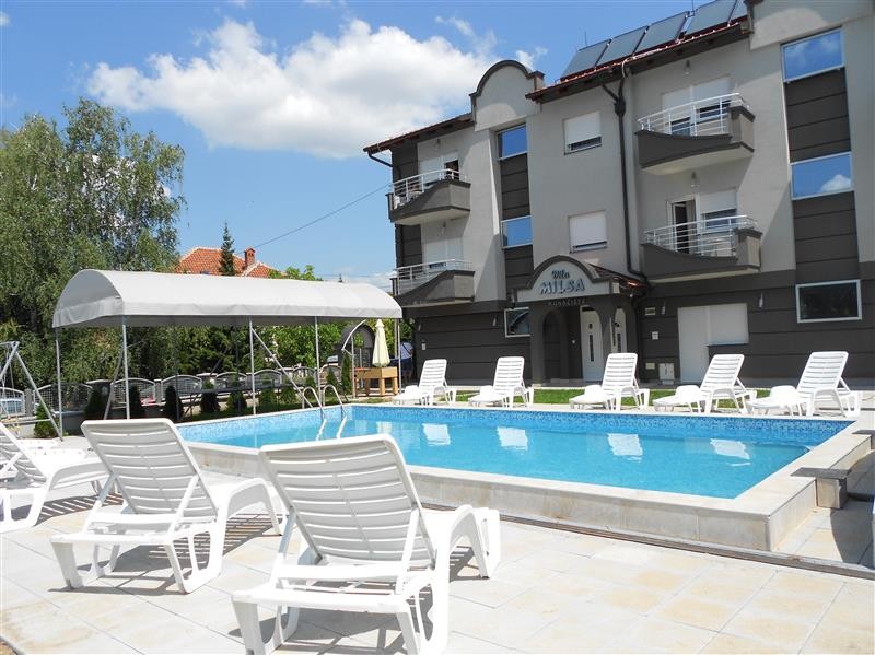Vila Milsa Lux Sokobanja  jedinstvenim izgledom koji pleni, modernim i komfornim smeštajem, lepo uređenim dvorištem sa kafe – barom i otvorenim bazenom (4.5m x 8m, dubina 1.2m) sa ležaljkama i suncobranima, Vila Milsa Lux će učiniti Vaš boravak u Sokobanji prijatnim. Nalazi se na 800 m od mermernog šetališta, u blizini hotela “Moravica” i hotela “Sunce”.