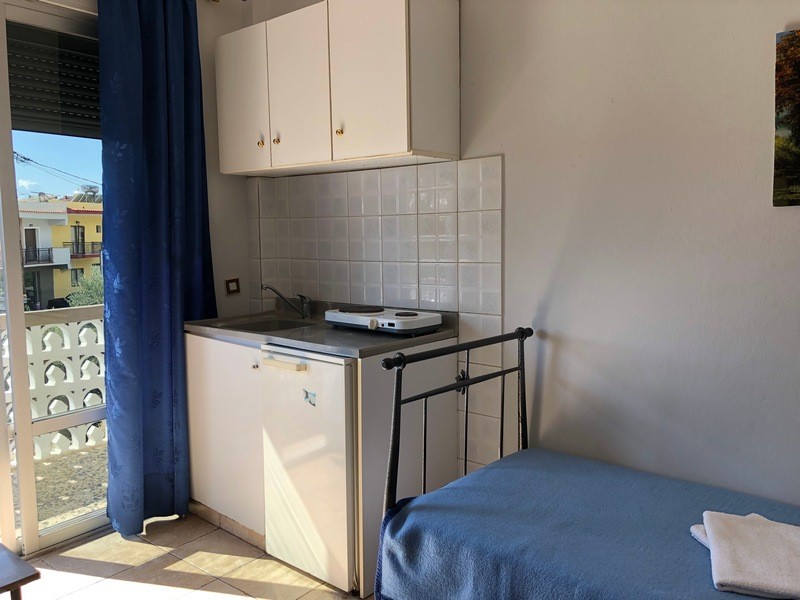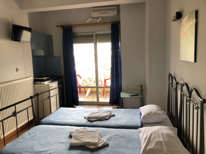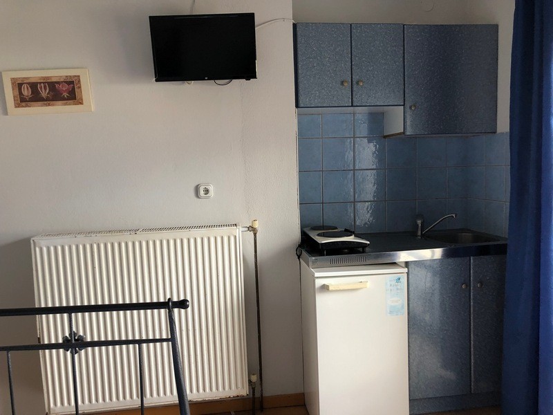 Trokrevetni studio (1/3 std) – jedna prostorija sa tri standardna ležaja, kuhinja u okviru iste prostorije, kupatilo i balkon;