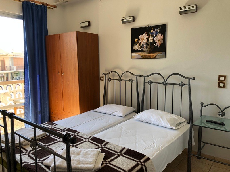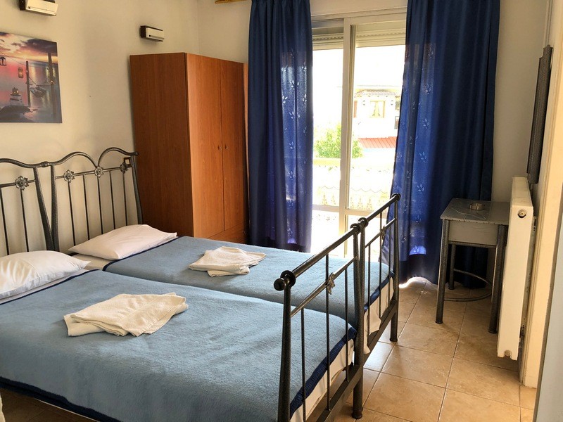 Trokrevetni apartman (1/3 app) – spavaća soba sa dva standardna kreveta i trpezarija sa kuhinjom u kojoj je jedan standardni ležaj, kupatilo i balkon;