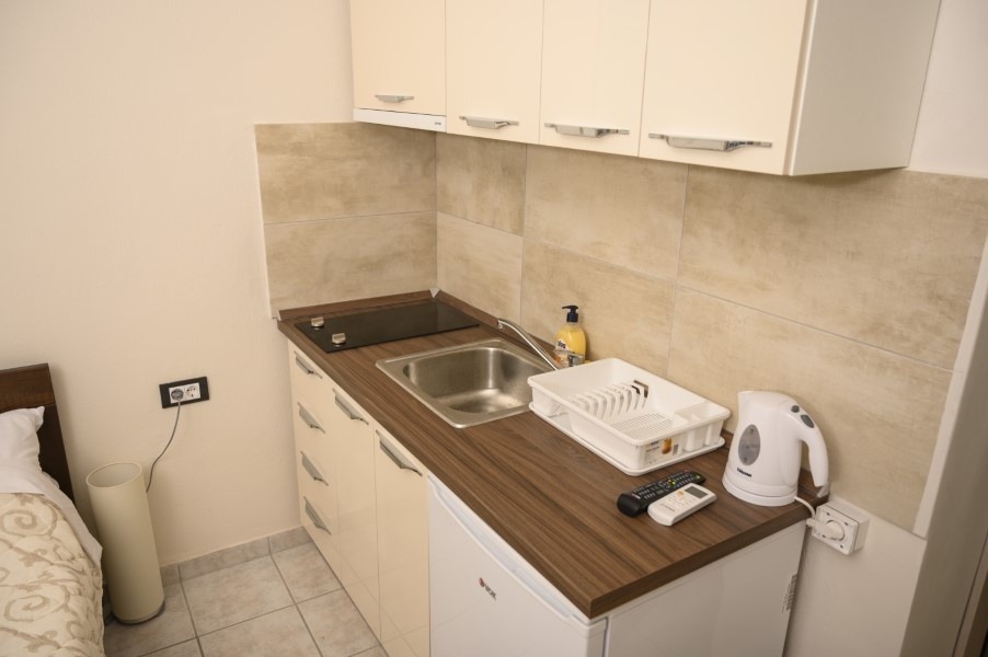 1/2 studio – u jednoj prostoriji čajna kuhinja i bračni ležaj.