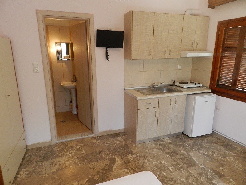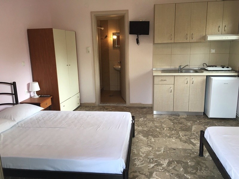 Vila Natalina Stavros raspolaže apartmanom za smeštaj 3 do 5 osoba sa potpuno renoviranim kupatilom za sezonu 2023., kao i studijima za smeštaj 2 do 3 osobe i svi se nalaze u prizemlju, u dvorištu vile, te su odvojene od ulice i gosti mogu uživati u privatnosti. Sve smeštajne jedinice imaju čajnu kuhinju sa posuđem, terasu sa garniturom za sedenje (terasa je ujedno i ulazni deo), klima uređaj (5 eur/dnevno), SAT TV, besplatni WiFi internet. Promena posteljine jednom tokom boravka. Vila nema peškire i gosti sami održavaju higijenu studija. Gostima vile je obezbeđen parking iza vile.